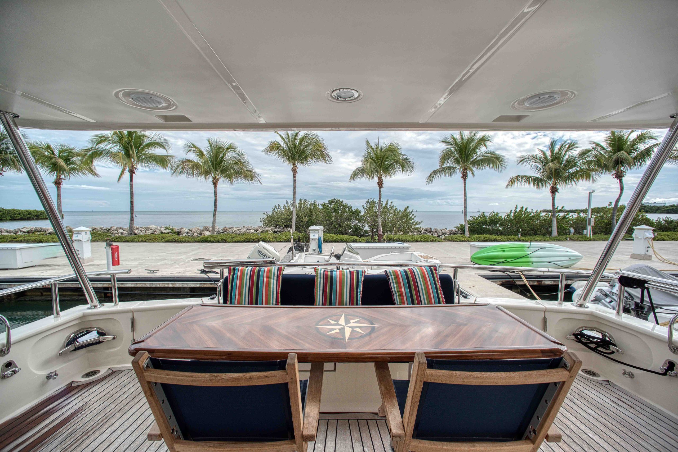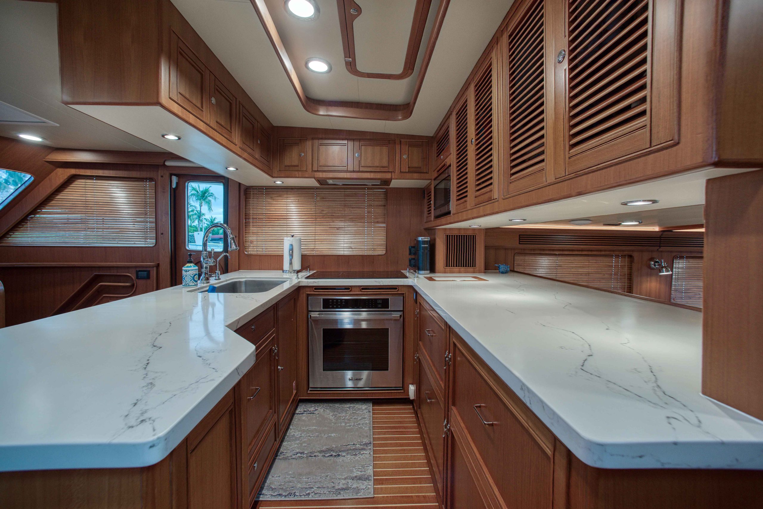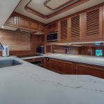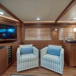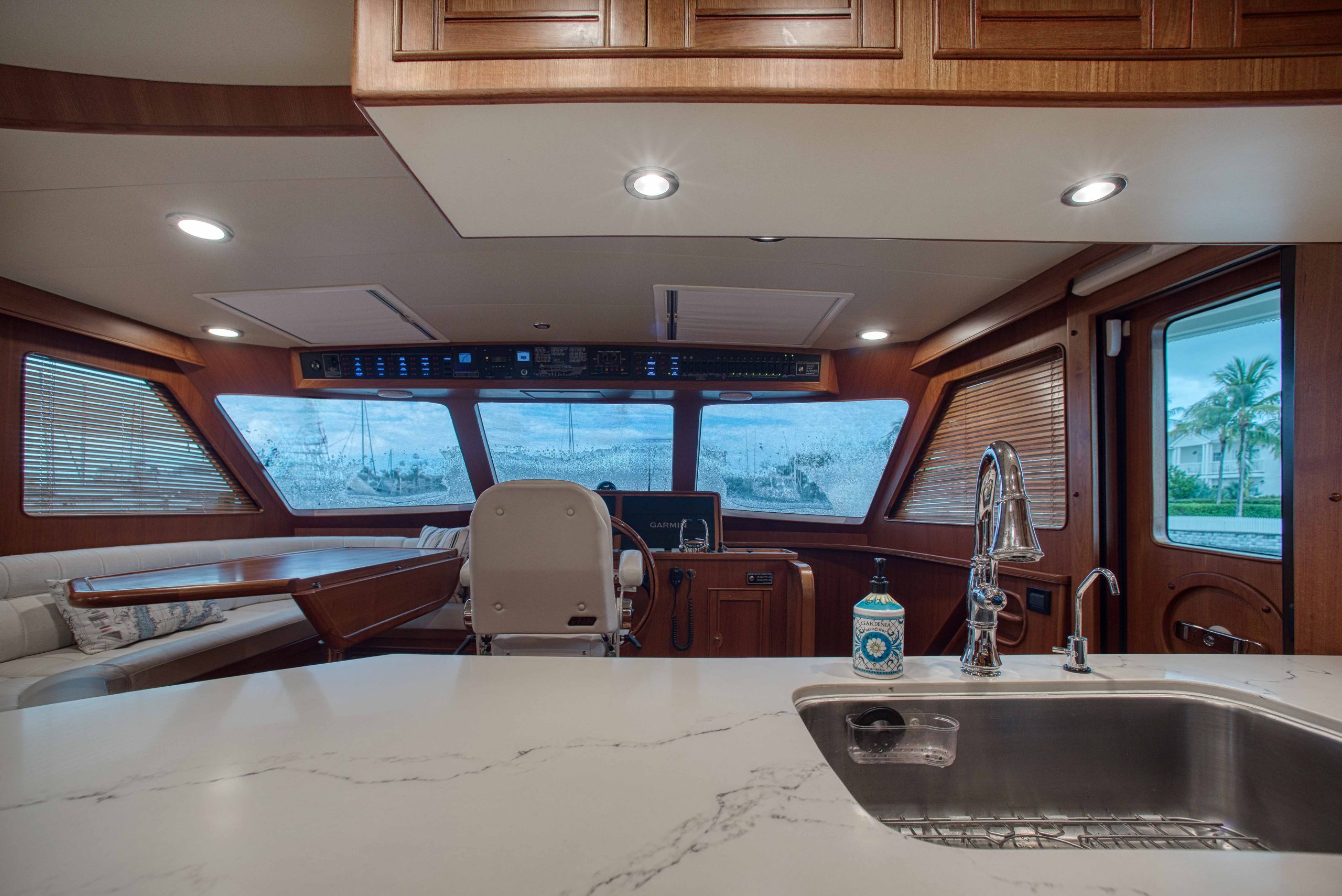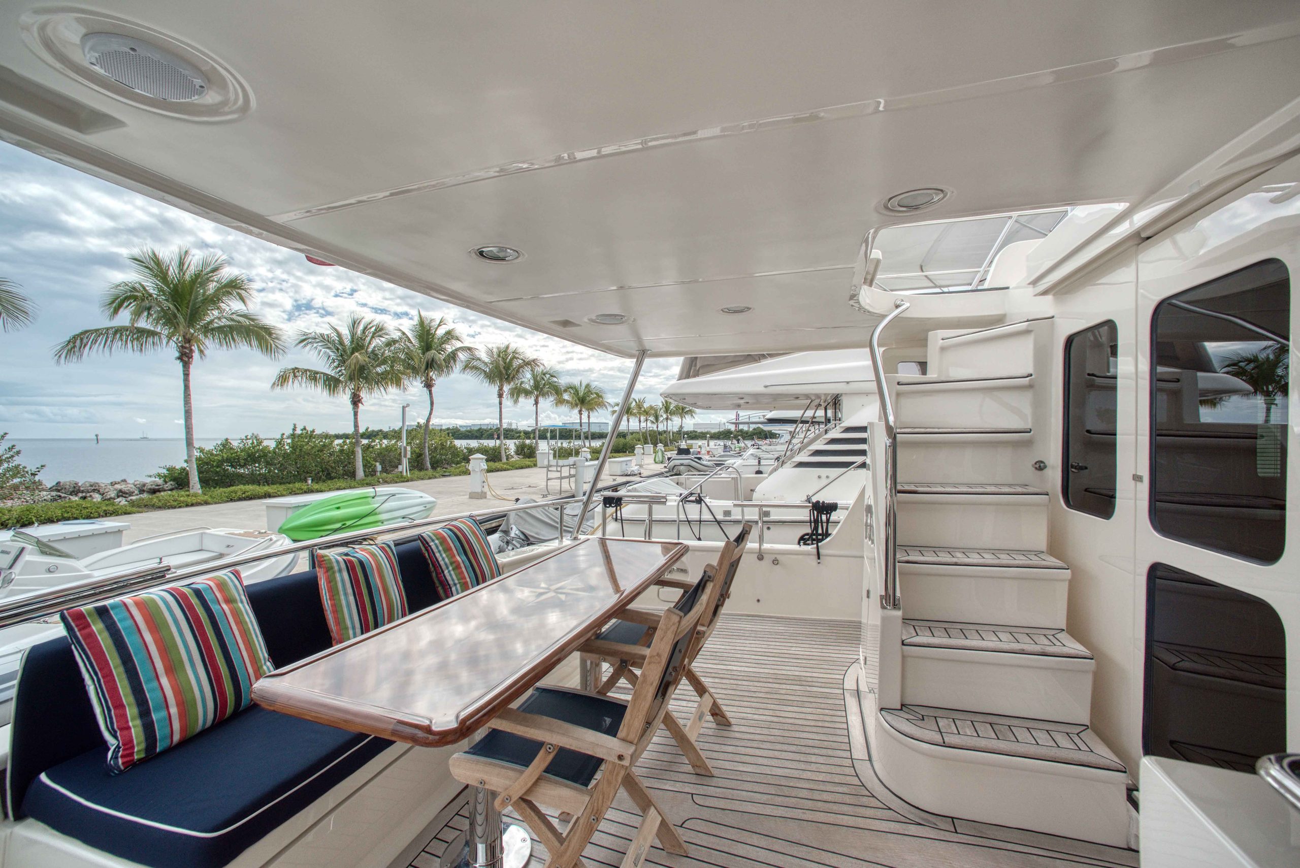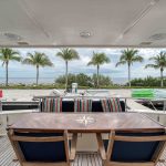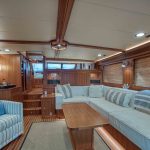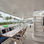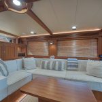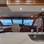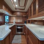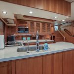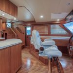 BeamIf you have been waiting for a late model 58E with the largest engines available, new Beach Club, twin heads aft in the master, davit and freedom lift, air-conditioned Flybridge; this is it. The engines were just serviced including the newly required aftercoolers being replaced at 6 years. These CAT C18’s are rated at 1,150 HP each. This is the full beam master with his and hers head aft and large shower in the middle. Dorothy Gale has twin generators, Beach Club / crew area, water maker / spot free combo machine. She loves to cruise at 9 or 19 knots like all the C-18 equipped boats but can cruise at 21-22 knots as well. Her hinged domes and mast allow for easy bridge clearance. Many customers say she is the perfect “Loop Boat”.